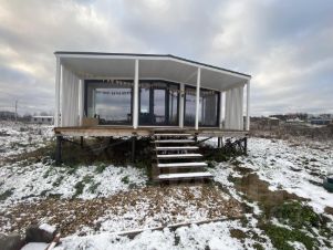 Шикарный домик с панорамными окнами в уютном местечке предлагается в аренду от месяца. В доме: две небольшие комнаты, кухня-гостиная 18 метров, санузел, терраса, кондиционер, теплые полы, вся необходимая мебель и техника для комфорта. Участок 8 соток, парковка.