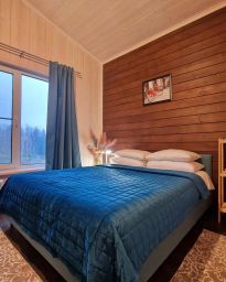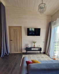 Дом рассчитан на 6 спальных мест. В доме имеется все необходимое для комфортного проживания : 2 спальни и гостиная зона, большая кухня с посудомоечной машиной и другой бытовой техникой и посудой, ванная, туалет, телевизор, музыкальная Bluetooth-колонка, WiFi. На территории располагается : русская баня, оцилиндрованное бревно, печь дровяная (любые веники, кроме березовых), горячая купель, мангальная зона, летний бассейн.