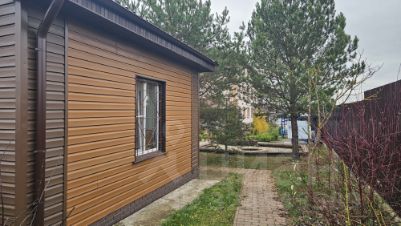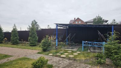Территория хорошо благоустроена: дорожки из тротуарной плитки, газоны, декоративные растения, беседка.