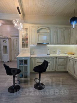 На первом этаже гостиная+столовая, спальня и небольшая комната. Современная кухня с с духовкой, посудомоечной машиной, микроволновкой и большим холодильником. Барная стойка, стулья.