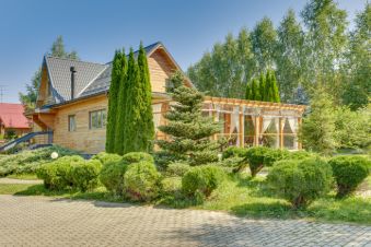 Уютный дом площадью 450 м2 с большой тёплой верандой находится в деревне Лисавино, в 49 км от МКАД по Новорижскому шоссе.