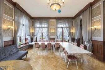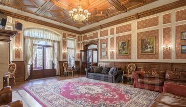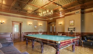 На первом этаже находятся две светлые гостинные, кухня-столовая и кабинет для работы или отдыха. Каминный зал с возможностью размещения до 60 человек создаст теплую атмосферу для вечерних посиделок.