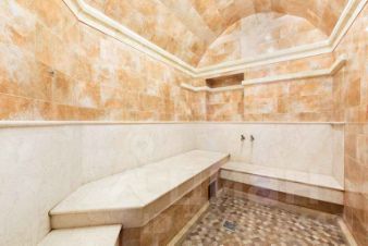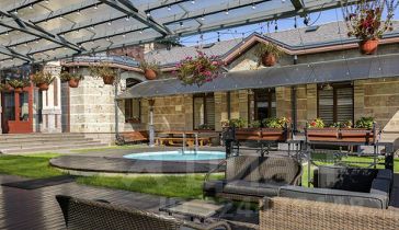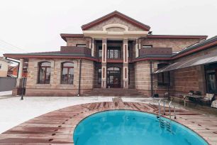 На территории имеется наружный бассейн круглой формы диаметром 4 метра и глубиной 2 метра, который оборудован подогревом, освещением и фонтаном с 60 форсунками.
