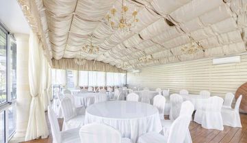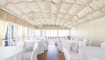 На улице расположены две больших веранды, которые идеально подходят для летних мероприятий. Кроме того, вы сможете воспользоваться свадебным шатром, вмещающим до 70 человек.