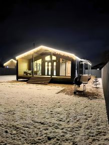 Дом очень теплый (водяной теплый пол везде + санузел теплые стены в санузле). Заказаны римские шторы блэкаут, дом полностью оборудован всем необходимым, есть камин, зона домашнего кинотеатра с проектором, зона барбекю и т.д.