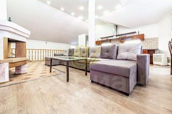гостиная с кухней, банкетной зоной (раскладной угловой большой диван, камин)