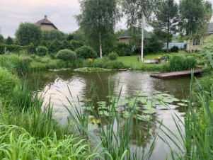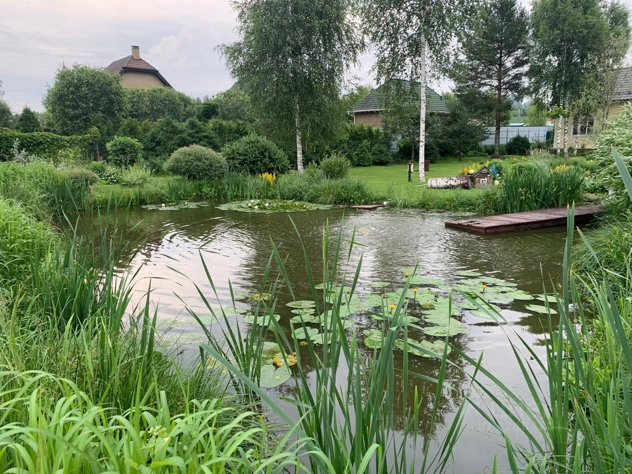 В Вашем распоряжении живописный пруд с пирсом который расположен на участке, зона барбекю, сосны, туи, моживельники, ели, березы, дубы