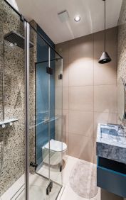 Пеpвый этаж: Прихожая, плавно переходящая в функциональную кухню и просторную гостиную с камином. Здесь же расположен санузел, хозяйственное помещение под лестницей и всесезонная терраса.