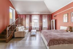 *2этаж: Гостевой блок со спальней (35,6 м. кв), два просторных санузла и три уютные жилые комнаты с выходом на лоджию и веранду, с неё вашему взору открывается изумительный вид на окружающую природу.