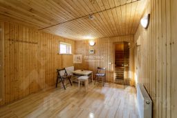 Подземный этаж: Зона для гостей, тренажёрный зал с теннисным столом , сауна и вместительное кладовое помещение. Площадь этаже составляет( 119,2м. кв.).