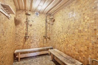 На территории расположена русская баня на дровах, с выложенной печью каменкой, прототипом которой является печь Сандуновских бань, с зоной отдыха и камина, а также освежающей купелью