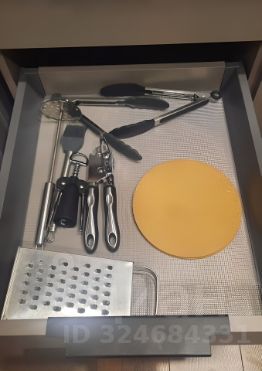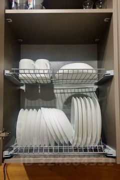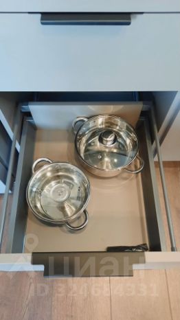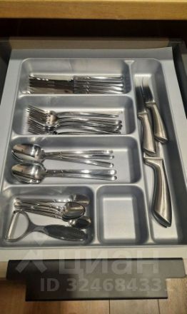 Полный набор посуды на 6 персон, кастрюли, сковорода, столовые приборы, всё необходимое для приготовления и сервировки стола.