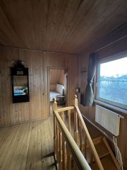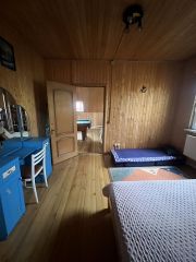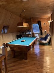 На втором этаже — одна спальня с двухспальной кроватью и односпальной раскладной кушеткой, вторая с двуспальной кроватью и раскладушкой. Третья комната проходная с бильярдом и раскладным диваном (2 спальных места).