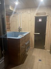 Санузел, стиральная машина, фен, дровяная баня, купель, душевая кабина.