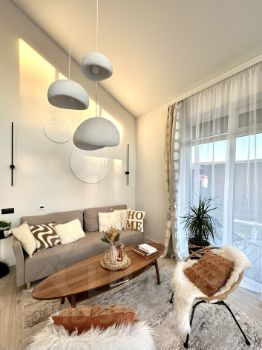 В доме есть всё необходимое для комфортного проживания. 6 спальных мест: 2 полноценные спальни с большими двуспальными кроватями и ортопедическими матрасами + дополнительное место: раскладной диван в гостиной. Премиальное постельное бельё. Тёплые полы по всему дому.