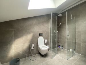 Есть вся необходимая мебель и бытовая техника, включая стиральную, посудомоечную машину, кондиционер, холодильник, телевизор, СВЧ, оборудованные спальные места; Планировочное решение дома: кухня-гостиная, большой холл, гардеробная, выход на открытую, уютную веранду под крышей, четыре изолированные комнаты, три санузла, техническое помещение с бойлерной, теплый пол по всему первому этажу, газовый котел.