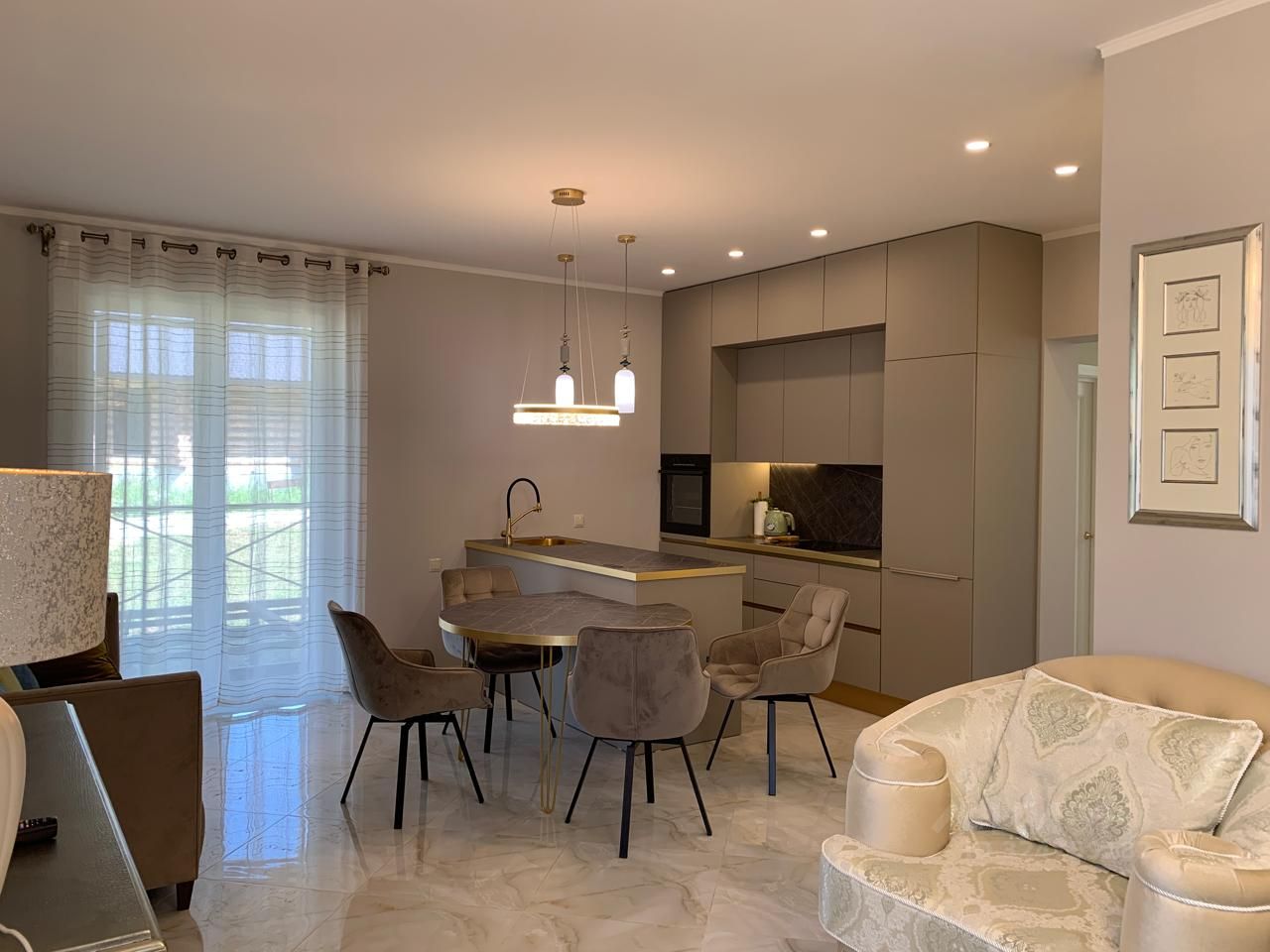 В отделке использованы натуральные материалы - мрамор, паркетная доска и прочее, мебель и техника ведущих мировых производителей. На участке газон, хвойные деревья, парковка на 2 а/м, уложена брусчатка, установлены эл. откатные ворота. Имеется система видеонаблюдения, сигнализация. Вся инфраструктура в 5-10 мин езды (п. Красная Пахра, г. Троицк).