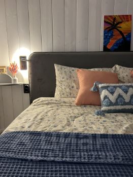 — 6 уютных спальных мест (2 изолированные спальни с КING-SIZЕ кроватью (160х200) и ортопедическим матрасом, и 1 двуспальный диван в гостиной)