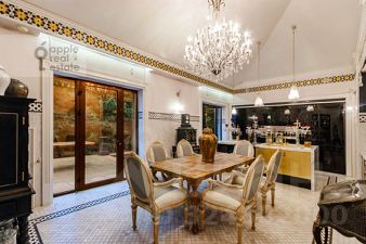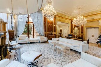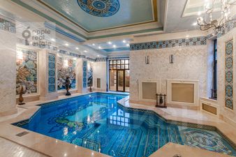 Площадь дома - 860 кв.м. Материал дома - кирпич. Количество этажей - 3. Спален - 3. Санузлов - 7. Площадь участка - 35 соток. Тип участка: лесной. Есть бассейн, гараж на 2 а/м, квартира для персонала (кухня, 2 спальни, с/у).