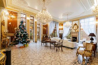 - холл, лифт, гостиная с дровяным камином, спальня с ванной комнатой с ванной, душевой и гардеробной, спальня с ванной комнатой с ванной и гардеробной, сообщающаяся детская спальня с ванной комнатой с ванной, душевой и гардеробной, с/у с душевой, гардеробная;