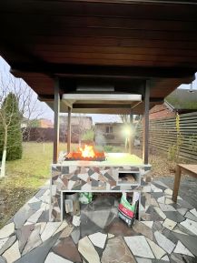 На участке 2 дома, основной и гостевой, каждый оборудован и оснащен всем для комфортного проживания. Гостевой дом сдается за отдельную доплату.