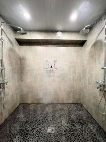 В доме оборудована баня на 1-м этаже с мини -бассейном в полу парной.
