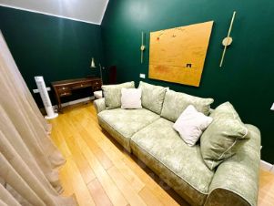 Придомовая территория 12,5 соток вымощена камнем и благоустроена газоном, подрастающими деревьями и гортензиями, оборудована поливом. Имеются крытые терраса с садовой мебелью и зоной барбекю, а также парковка для 2 автомобилей (+3 гостевых места).