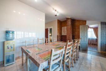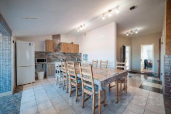 -на 2 этаже: кухня и обеденная зона, оснащённая всем необходимым: холодильник, плита, микроволновая печь и вся необходимая посуда (для банкета предоставляем -дополнительные столы и стулья, с комфортом могут разместиться до 12 человек), четыре спальни с современным дизайном, общая душевая и туалет (одна из спален имеет отдельный санузел)