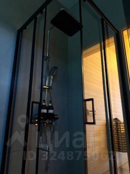 Санузел с душевой кабиной и тёплым полом с прямым входом в сауну