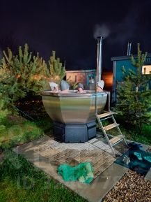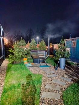 ЧАН оплачивается отдельно 7000 р одна топка, вода в чане 40 градусов, остывает до 4-5 часов. Чан большой, рассчитан до 6 человек.