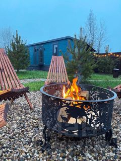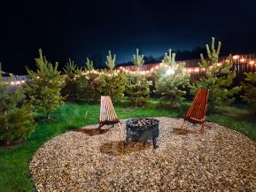 - Костровая зона с удобным стульями.