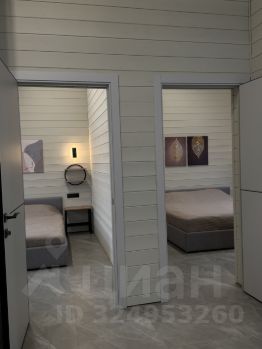 Две спальные комнаты, с двуспальными кроватями и панорамными окнами.