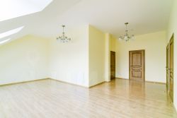 Состоит из двух этажей, цоколя и мансарды. По планировке в цоколе предусмотрено помещение свободного назначения, кладовые комнаты, котельная; на 1 этаже- прихожая, гостиная зона, камин, кухня, спальная комната, сан.узел, хозяйственная комната; на 2 этаже- три спальные комнаты со своими санузлами, гардеробная; на мансарде - помещение свободного назначения и 2 спальные комнаты с санузлом.