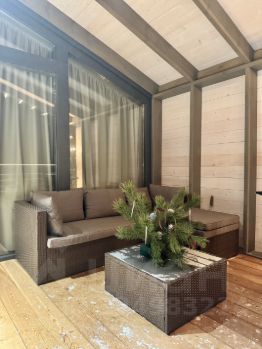 Терраса с садовой мебелью и пледами для уютных вечеров.
