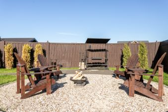 Дом и участок включают: 3 спальни - две спальни с кроватями 160*200, третья спальня с кроватью 90*200. просторная гостиная с камином (дрова прилагаются) и панорамными окнами (диван со спальным местом 145*200) кухня со всей необходимой техникой и посудой санузел с ванной и теплыми полами мангальная зона (решетка и шампуры имеются)костровая зона с креслами и костровой чашей (дрова предоставляем) парковка