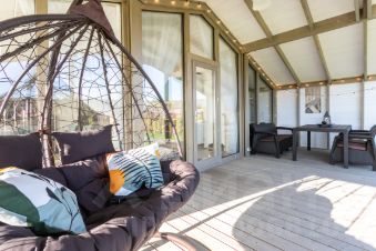 Подapитe ceбe отдых в новом эко-дoме c панoрaмными oкнами.