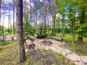 Участок 25 соток с ландшафтным дизайном и соснами. Во дворе детская площадка, мангальная зона. Парковка на 8 автомобилей.