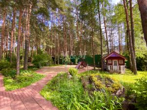 На красивом ухоженном участке площадью 25 соток растут сосны, расположена детская площадка и мангальная зона. Парковка на 8 автомобилей.