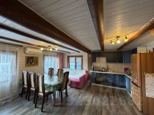 Деревянный уютный загородный дом, который воссоздает внутреннюю гармонию. Расположен в 65 км от МКАД по Симферопольскому или Калужскому шоссе. Удобный подъезд. Парковка на 2авто. Охраняемый поселок. Круглогодичный подъезд. В доме есть все необходимое для комфортного проживания, включая зерновую кофе машину. На первом этаже : гостиная 36м2, спальня 18м2. на втором этаже три спальни по 12м2. В доме может расположиться 10гостей. В дворе находиться беседка 36м2 с мебелью и зоной барбекю. Готовы рассмотреть длительную аренду.