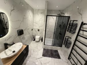 Современный двухуровневый коттедж с дизайнерским ремонтом идеально подходит как для семейных выездов, так и для праздников, дней рождений и корпоративных мероприятий.