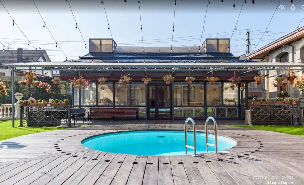 Вилла "Пахрапарк" расположена в г. Троицк, в 19 км от МКАД по Калужскому шоссе. Капитальное двухэтажное здание с подвалом. Пристроены Банкетный зал 90 м2 и Кальян-Бар 100 м2 Централизованные газ, вода,канализация, электроснабжение. Интерьер выполнен в Викторианском стиле. На первом этаже располагаются прихожая, гардероб, гостинная, Спальные комнаты с верандой, кухня профессиональная, столовая, Караоке-клуб, СПА зона с бассейном, джакузи, наружным бассейном, хамамом, сауной, комнатой отдыха. Также в СПА зоне есть душ Шарко, ледяная ванная для ног, водопад, противоток. На втором этаже располагаются спальные комнаты, бильярдный зал, зимний сад- веранда, балконы. В пристроенном банкетном зале проходят свадьбы , дни рождения, юбилеи и другие мероприятия. В пристроенном Кальян баре можно курить кальян, присутствует вытяжная и приточные вентиляции. Также там есть камин, бильярд, настольный теннис, телевизоры. На заднем дворе находится барбекю с дровянным очагом для костра. Также на придомовой территории есть чан на 2 м3 горячей воды( 45-50 градусов). Придомовая территория полностью благоустроена для проведения разных мероприятий. 300 м2 участка защищены от непогоды козырьками, установлены жезлонги, скамейки, диваны садовые и т.д. Внутри территории и снаружи есть автомобильные стоянки для 22-х автомашин.Транспортная доступность выгодно выделяет этот обьект из числа других. Автобусная остановка (до Москвы) находится в 100 метрах. Все автобусы доезжают до метро "Коммунарка" или "Теплый Стан" за 20-30 минут.