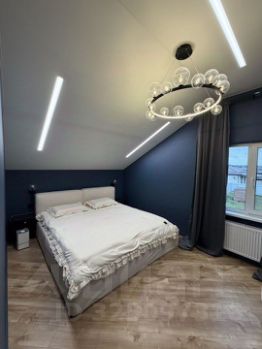 - На 2-м этаже находятся три спальни, каждая из которых оборудована всем необходимым для комфортного проживания, и еще один санузел с ванной.