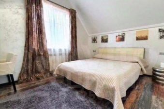 Коттедж площадью 600 м2 расположен в 45 км от МКАД по Симферопольскому шоссе, в Чеховском районе на территории садового товарищества в окружении леса, д. Ивачково.