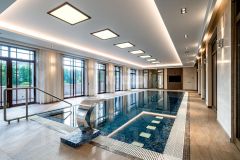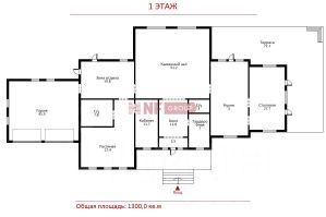 1 этаж: каминный зал, холл, гардеробная, с/у, кухня с выходом на террасу, столовая, зона отдыха с выходом на террасу, гостиная с кабинетом, с/у, 2 гостевые спальни, СПА-зона: душевая, с/у, гардеробная, сауна, душевая, бассейн 12 м., бильярдная, барная зона отдыха, гараж на 2 м/м;