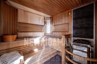 1 этаж - холл, каминный зал, гардеробная, с/у, кухня с выходом на террасу, столовая, зона отдыха с выходом на террасу, гостиная с кабинетом, с/у, 2 гостевые спальни, СПА-зона: душевая, с/у, гардеробная, сауна, душевая, бассейн 12 м., бильярдная, барная зона отдыха, гараж на 2 м/м,