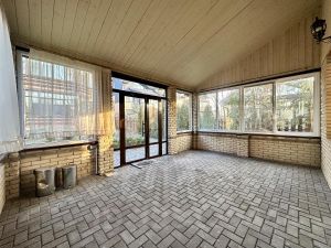 На веранде установлены пластиковые окна-слайдеры, которые в теплое время позволяют отдыхать на свежем воздухе.