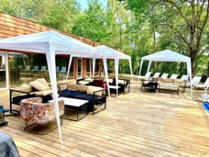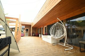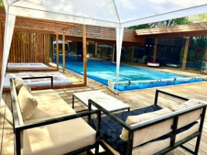 Возможность подныра из бани в бассейн под открытым небом.