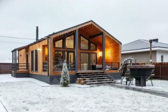 Высокие потолки 4,5м и большие окна создают атмосферу легкости и свободы, а тёплый пол по периметру гостиной и камин согревают после прогулки по еловому лесу.