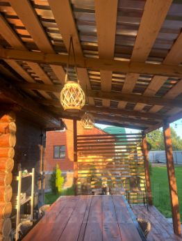 Во дворе есть баня на дровах, очень классная ( что редкость ) с удобным предбанником, с лева от бани беседка крытая сейчас , летом можно открывать. Ещё летний туалет , мангал и хоз блок.