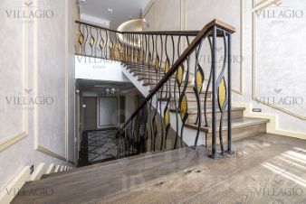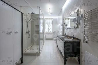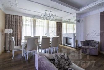 В доме два этажа, на которых расположены 5 спален, 4 ванных комнаты, 2 гардеробные, кабинет, гостиная с камином и панорамным остеклением, сауна, постирочная, терраса, гараж. В доме выполнена отделка из материалов класса Deluxe.